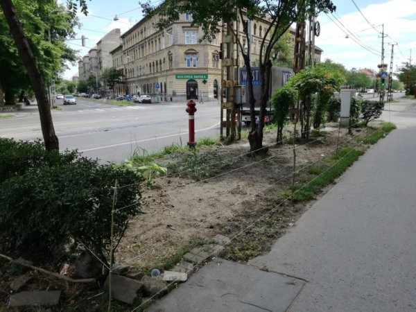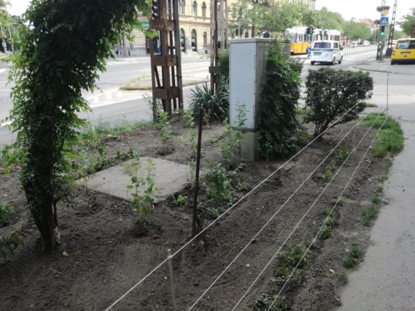 “Kertvárosban mindenki köteles saját háza előtt rendben tartani a területet. Belváros környéke kicsit más. De ha szépet szeretnénk, kénytelenek vagyunk magunk csinálni. Más nem teszi meg helyettünk. Azóta is furán néznek páran, mikor lent kapálok, locsolok… de mindenki elismeri, hogy tetszik neki. Sajnos van, hogy kitapossák, vagy egy-két tő eltűnik, vagy összeszemetelik. De kitartunk. Hátha szebbé