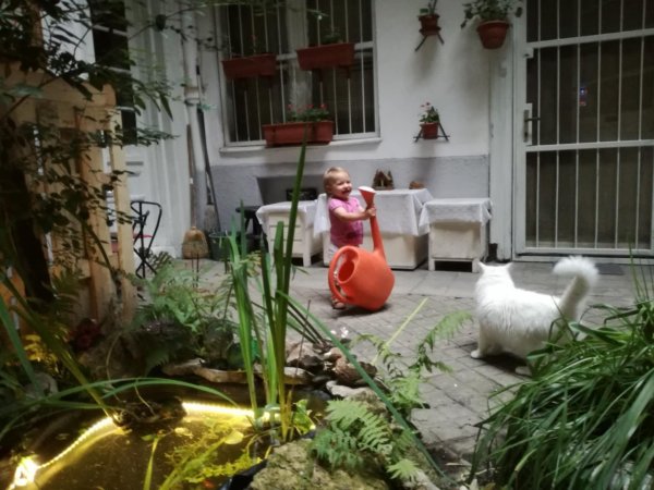 Folyamatosan fejlődik kicsiny oázisunk. Legutóbb egy régi, szintén kerületi barátom segített. Nem a mi házunkban lakik, csak látta mit csinálok és felajánlotta a segítségét.