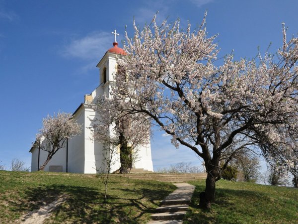 “A Havas Boldogasszony-templom előtt álló mandulafa 135 éve örvendezteti meg virágaival a látogatókat. A mandulavirágzás Janus Pannonius püspök 1466-ban, egy mandulafáról írt verse óta az örök megújulás és a műveltség szimbóluma is a 2000 éves városban. A fehér sziklákon álló, szelekkel dacoló matuzsálemről már 100 éve is szeretettel írtak, de a csodálatos panoráma, melyet a táj varázsának és a történelmi korok lenyomatának összefonódása teremt meg itt, azóta is sokakat rabul ejt.”
