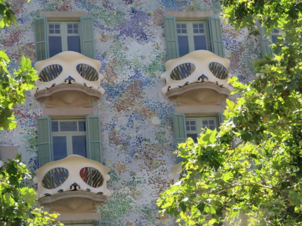 Barcelonában járva Antoni Gaudi erkélyeiről is érdemes pár szót ejteni. Bár ezek nem virágos erkélyek, de annyira díszítettek és olyan sok zöld veszi körbe ezeket, hogy a virág abszolút nem hiányzik róluk. Sőt! A színes növények csak elvonnák a figyelmet a míves díszítésről.