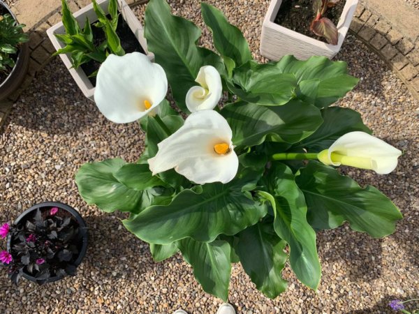 A kálával nincs még nagy gyakorlatom, tavasszal ültettem először. Azt tudom, hogy folyamatosan nedvesen kell tartani a földjét. Itt Angliában más a klíma, lehet ezt jobban kedveli. Nekem folyamatosan hozza a virágokat. Általános tápoldatból ezek is kaptak.