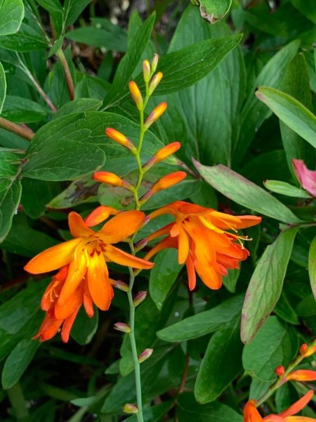 Az egyik kedvenc a crocosmia, úgy tudom sáfrányfű magyarul. Angliába még a beton között, az út szélén sok helyen látni.