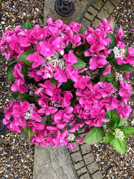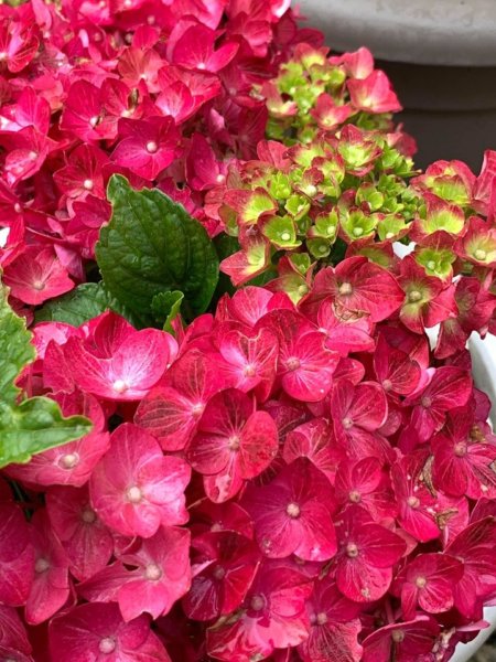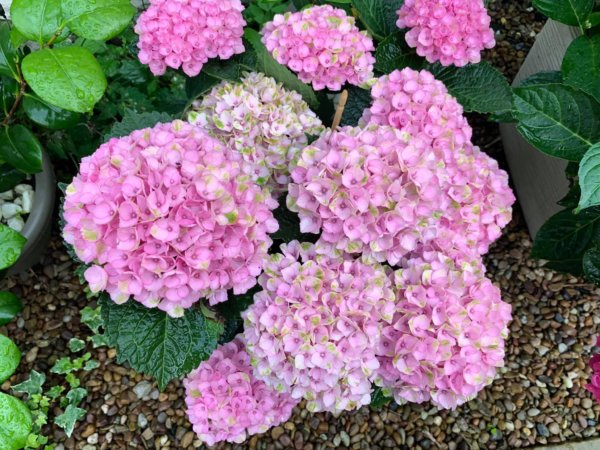 A hortenziák többsége is cserépben van. Évente kicsit nagyobba ültetem felfrissítve a földjét (savanyú föld) és tápoldatozom is őket speciálisan hortenzia tápoldattal. Van, hogy már kora ősszel megmetszem óvatosan. De otthon, a hideg tél miatt célszerűbb a fagyok elmúltával kora tavasszal metszeni. Mindig csak az elszáradt virág alatt, a kis hajtásra ügyelve, mert abból lesz a hajtás, amin jön majd virág. Ha túl nagy vagy formátlan a bokor, erősebben is vissza lehet vágni, ez esetben nem hoz abban az évben sok virágot vagy csak később fog virágozni.