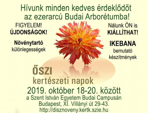 A Budai Arborétum területe három napra ismét benépesül és tartalmas programokkal várja a növények, a virágkötészet és a kertészkedés szerelmeseit. A tartalmas programok mellett virágvásárlásra is lehetőség nyílik 2019. október 18 és 20 között.