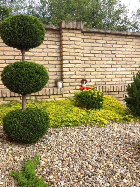 A kerítés nagyméretű bontott téglából készült. Baján vettük egy tüzép telepen, ahol ezt is forgalmaznak. Ők azt mondták, ezek a téglák valamikor vályogban voltak, a ház alapjában. Szépen tisztított állapotban kaptuk, de még így is sok agyagos sár jött le róla ahogy mosták. Jól bírja, semmi gond vele. Én ajánlani tudom, ez a fajta kerítés ebből mutat igazán. Nem gondolom, hogy szétmállana egykönnyen, nagyon nehezek.