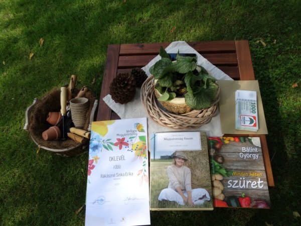 Nagyon, de nagyon örültem a díjaknak: Borbás Marcsi dedikált, saját szakácskönyvét, „Magyarország finom – Vadregényes Kelet”) Bálint gazda („Minden héten szüret” című) haszon- és dísznövényekkel, egész éves gazdálkodással kapcsolatos könyvét….és persze, nem mellesleg pénzdíjat is kaptam.