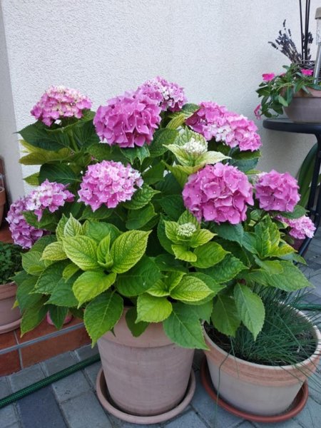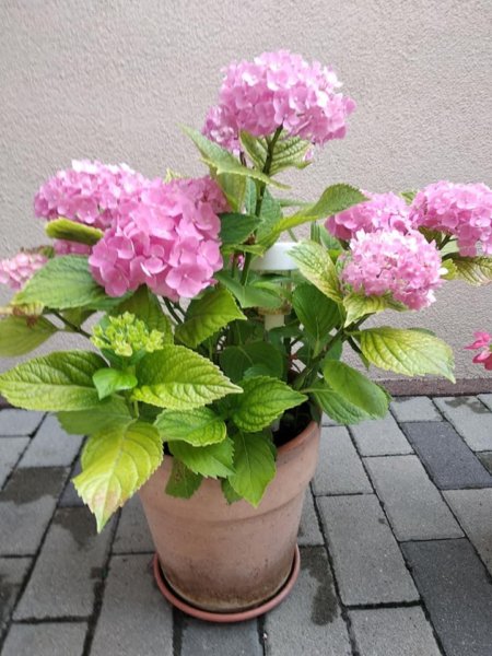 “A hortenziák a kedvenceim. Cserépben tartom őket már három éve. Ősszel levágom tövig, kicsit betakarom valamivel és tavasszal szépen kihajt.”