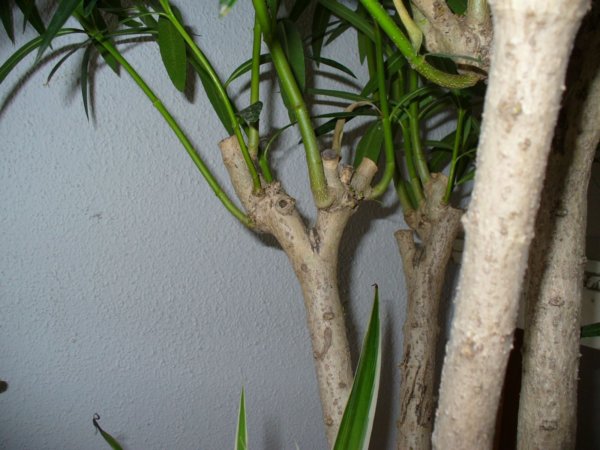 A megvastagodott törzsön nem csak három, hanem rengeteg rügyből bújtak elő az ágak. Vagy 5-ször annyi volt mint amennyit hagytam megnőni.