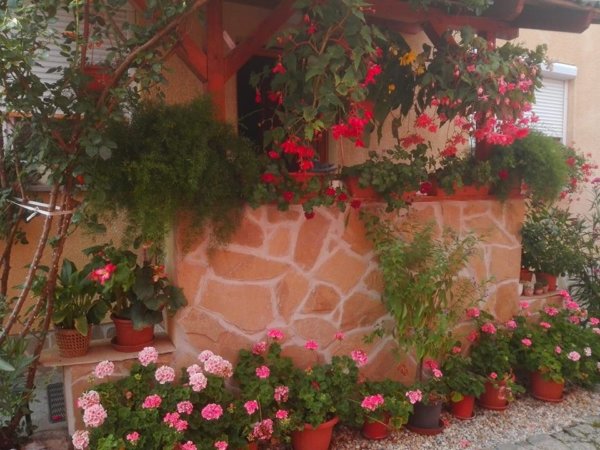 Meksz Tünde: “Nálunk is van ezermester 😉 A falat a férjem rakta, homokkővel burkolta, fúgázta, én meg a virágfelelős vagyok