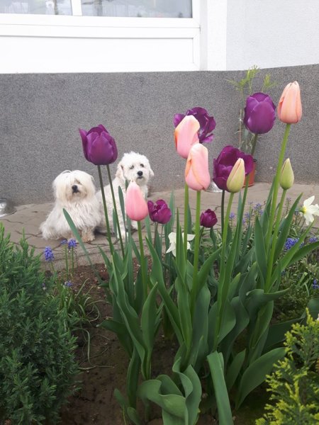 “Nekem van egy vizslám bár az ő birodalma külön van a virágoktól. De ha a kertben vagyok ő is ott van velem és nem szokott kárt tenni.